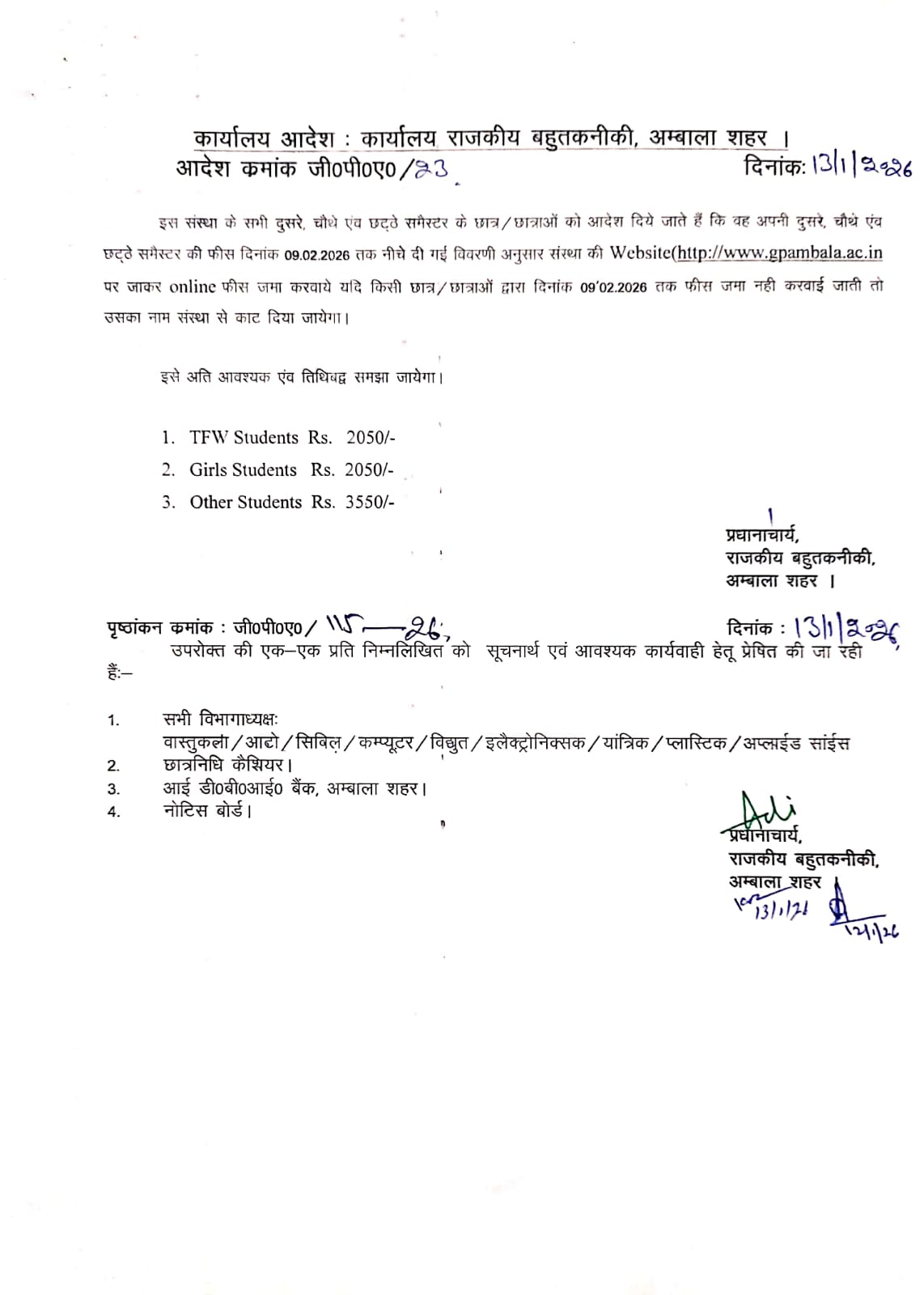 Announcements/Notices PostMatric Scholarship for SC/BC students -2025-26 Student Affidavit performa Student Semester Fees Notice-Jan 2026